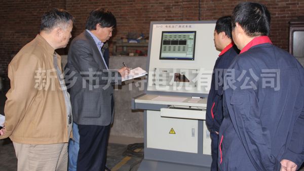 各位領(lǐng)導(dǎo)在成品出廠試驗臺前檢測成品綜合性能